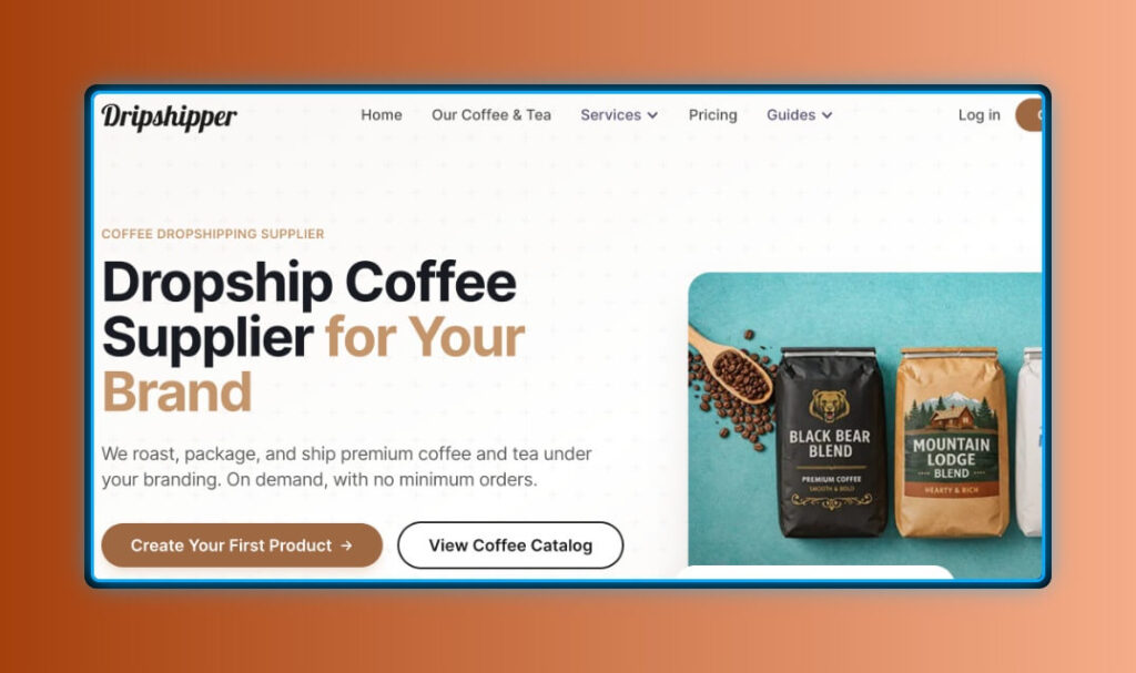 Dripshipper is one of the best coffee dropshipper for selling coffee online. It closely integrates with Shopify (#1 eCommerce platform to start dropshipping). They have USA based facilities allowing them to fulfil within USA orders in just 3 days.