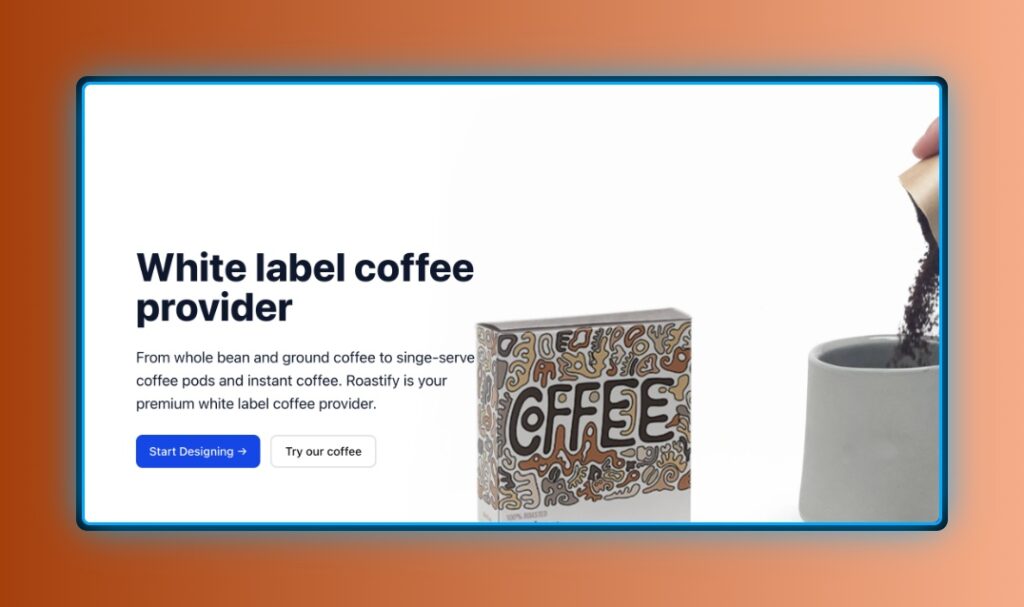 Second pick on my list of best private label coffee dropshippers is Roastify. This one is a quickly growing supplier known for delivering freshly roasted coffee. You will get complete control over coffee bags design. Similar to Dripshipper they also offer Shopify app integration.
